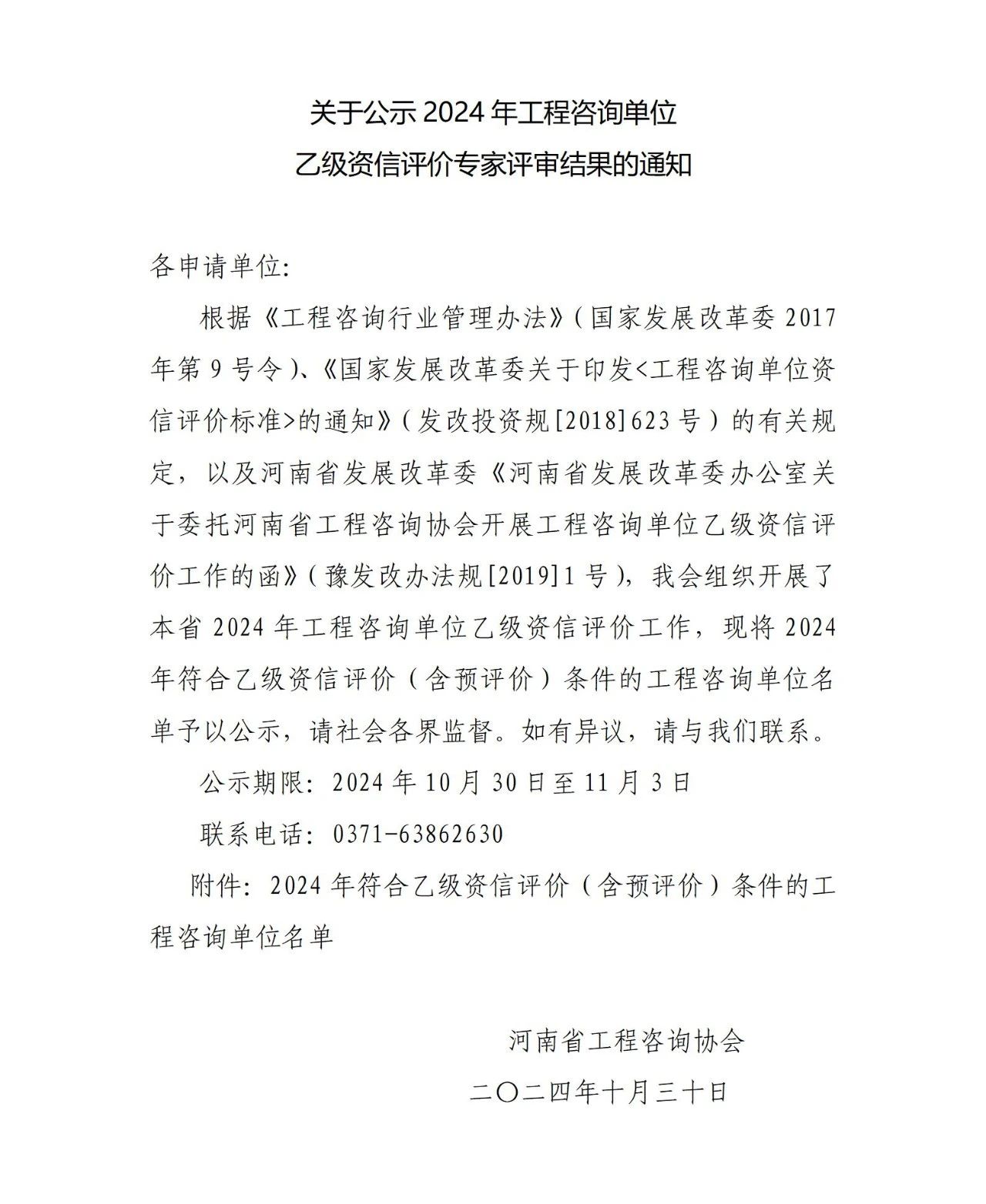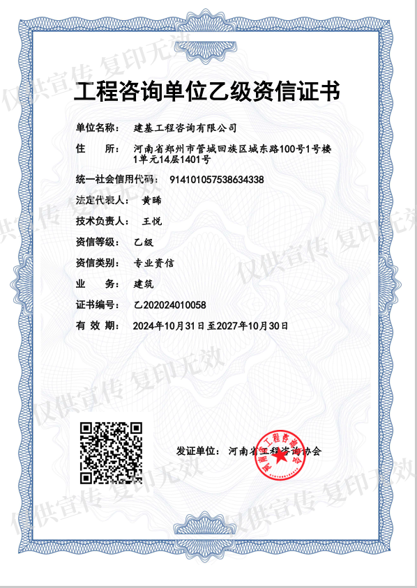 近期,河南省工程咨詢協會發布了《關于公示2024年工程咨詢單位乙級資信評價結果的通知》,公司成功取得了“工程咨詢單位乙級資信證書”。