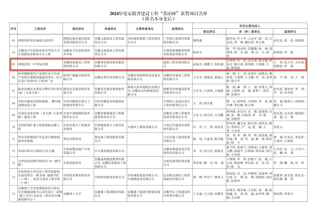 近日,安徽省住房和城鄉(xiāng)建設(shè)廳、交通運(yùn)輸廳、水利廳聯(lián)合發(fā)布《關(guān)于公布2024年度安徽省建設(shè)工程“黃山杯”獎(jiǎng)獲獎(jiǎng)項(xiàng)目名單的通知》,公司監(jiān)理的銀河一路九年一貫制學(xué)校-綜合樓、宿州學(xué)院新征土地一期工程及道路管網(wǎng)設(shè)計(jì)--第四食堂項(xiàng)目(施工)、固鎮(zhèn)縣第一中學(xué)綜合樓3項(xiàng)房屋市政類工程“榜上有名”。