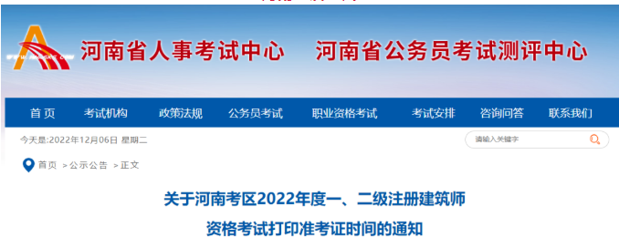 關(guān)于河南考區(qū)2022年度一、二級注冊建筑師資格考試打印準(zhǔn)考證時(shí)間的通知