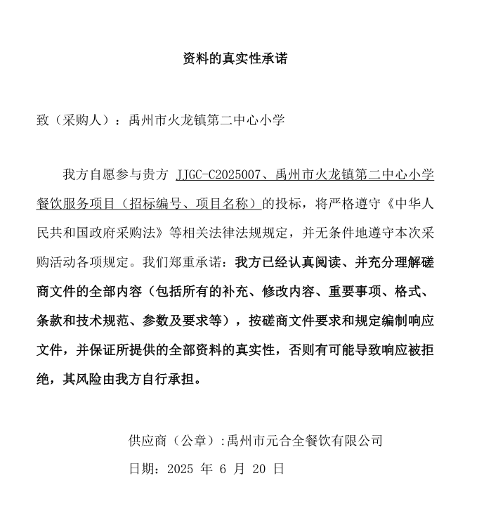 1 | 禹州市元合全餐飲有限公司 | 禹州市火龍鎮第二中心小學餐飲服務項目 | 詳見 附件 | 詳見 附件 | 詳見 附件 | 詳見 附件 |