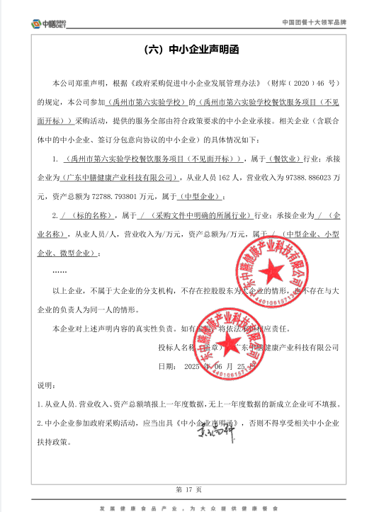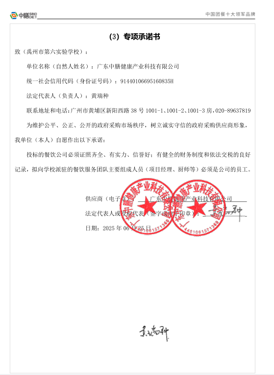YZCG-DLG2025028 | 禹州市第六實驗學校餐飲服務(wù)項目 | 廣東中膳健康產(chǎn)業(yè)科技有限公司 | 廣州市黃埔區(qū)新陽西路 38 號 1001-1、1001-2、1001-3 房 | ||||