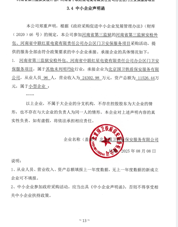 一、項目名稱:河南省第三監獄安檢外包、河南省中聯紅星電瓷有限責任公司辦公區門衛安保服務項目